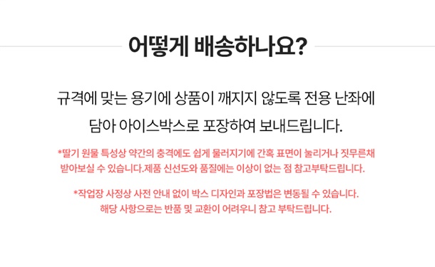 · 구매자가 배송지 주소를 잘못 기입한 경우, 반송/재발송 모두 택배비를 부담하셔야 합니다. (꼭 정확한 주소를 기입해 주세요)