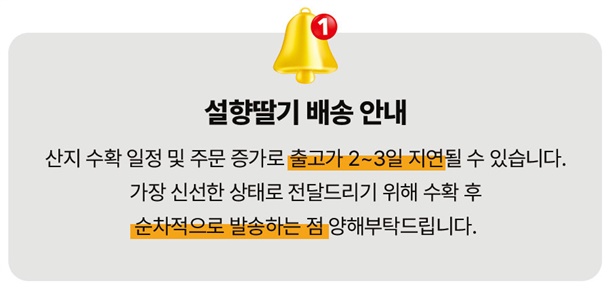 · 배송은 입금확인된 날짜로부터 1~3일 소요되며 최대 7일 이내 출고됩니다. ( 공휴일, 기상악화 등 불가피한 상황에 따라 추가 지연될 수 있습니다.)
