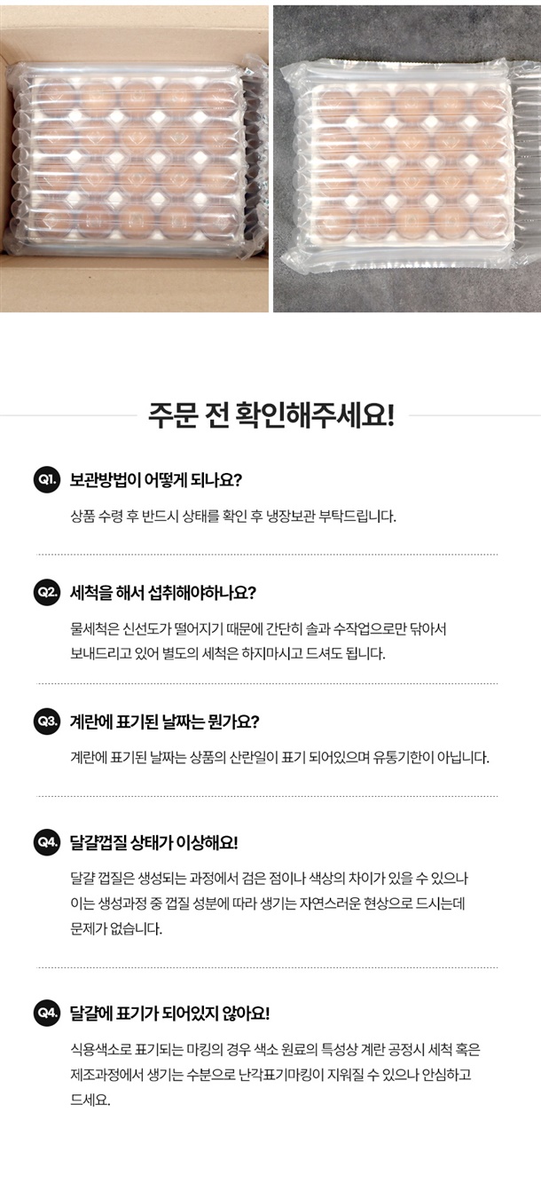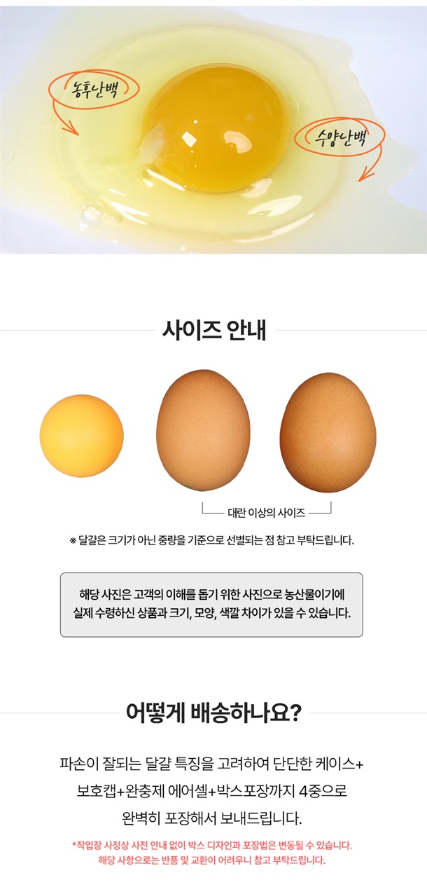 | 소비기한 | 난각에 별도표기(산란일로부터 45일) |