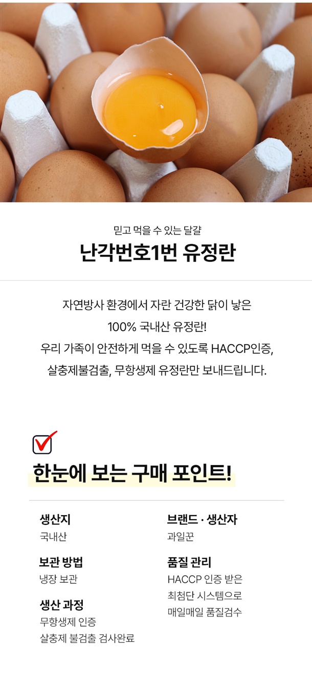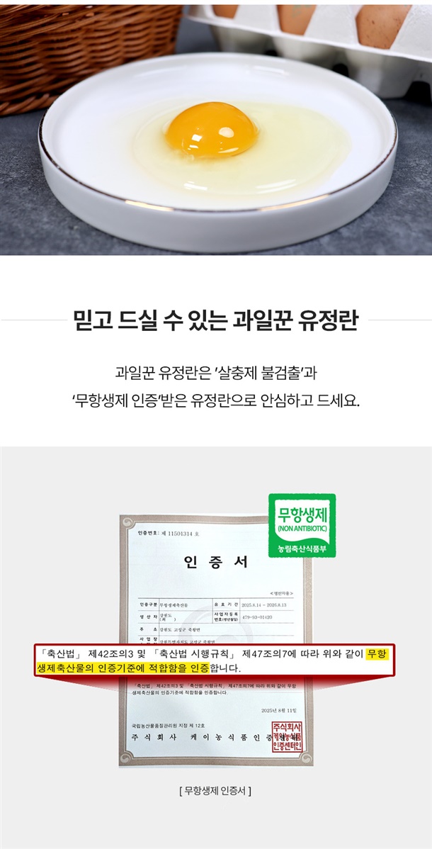 | 원재료명 및 함량 | 국내산 계란 100% |