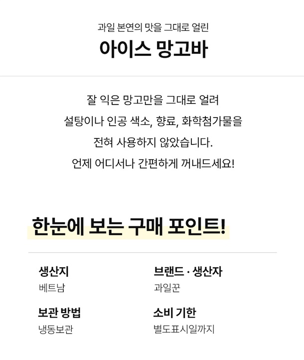 | 식품유형 | 과.채가공품(가열하지 않고 섭취하는 냉동식품) |